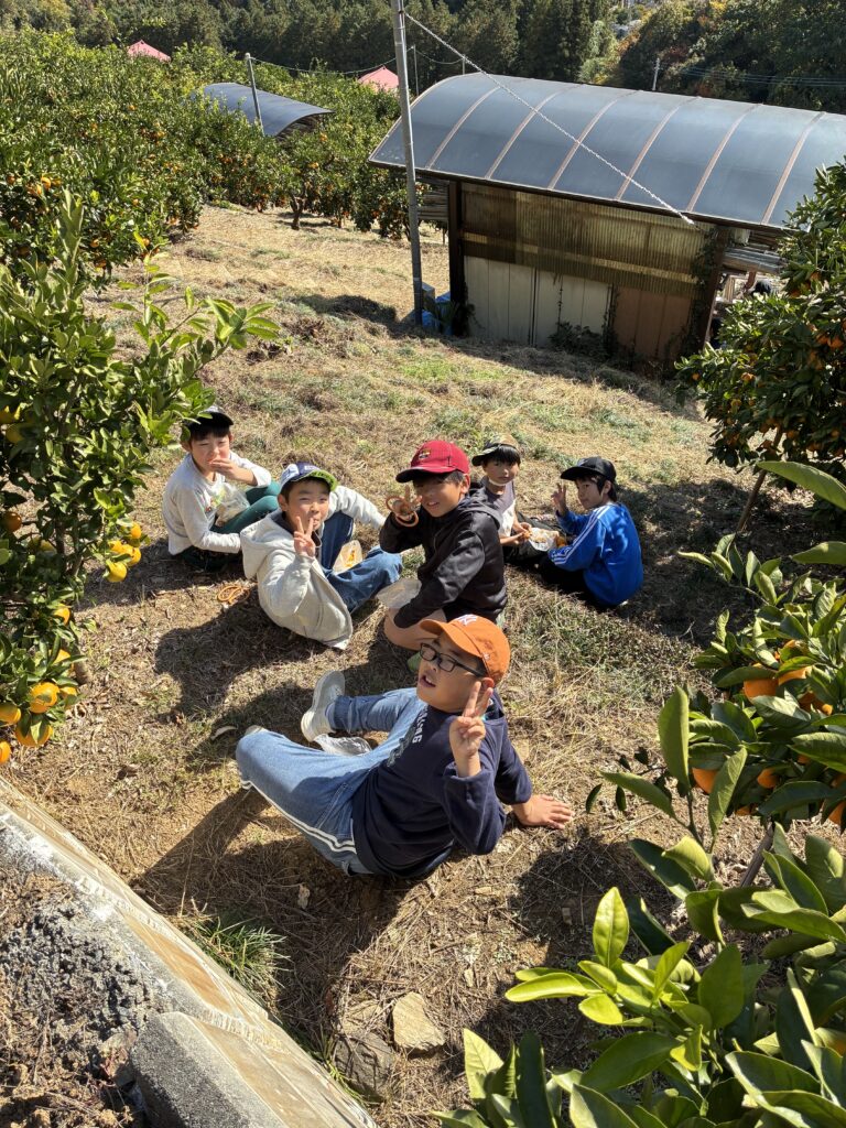 更新が遅くなりましたが、11月14日の県民の日に3年生以上を対象にみかん狩りへ行きました。天気も良くみかんも甘く子どもたちはとても楽しんでいました。みかんも美味しいと言ってたくさん食べておみやげのみかんもたくさん採っていました。